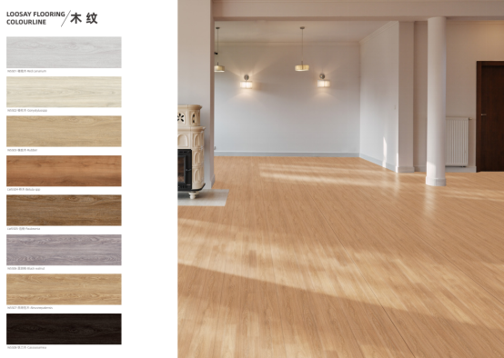 The advantage of wood grain LVT floor is that its appearance is no different from that of real natural wood. You can have a natural space without cutting down a tree. The texture is very natural, and you have a very variety of choices. From warm color system, to gray system, and then to heavy color system, it brings the possibility of creating more effects for space design: less materials, more beauty, using our LVT floor, You don't have to worry about doubling the use of flooring. Using our products can perfectly match and integrate all kinds of environment, and will not cause any material waste.